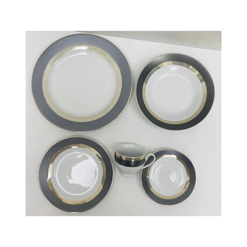 ‘-Juego De Vajilla De 20 Piezas -Material Porcelana -Color Blanco Y Gris